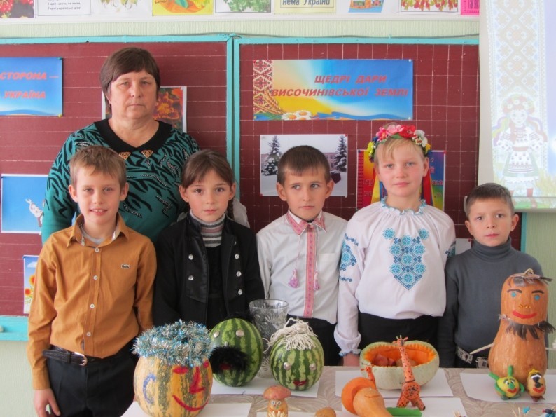 Вчитель. Діти, ми потрапили до майстерні вишивальниць. Зараз це ремесло забуте, Але багато жінок і дівчаток нашого села вміють вишивати. У нашій школі працює гурток «Вишиванка. Його керівник – Єманова Ніна Павлівна. Це бібліотекар сільської бібліотеки. Роботи гуртківців виставлялися на шкільних, районних і навіть обласних виставках декоративно-прикладного мистецтва. Роботи наших випускниць Скиби Л. та Сивокінь Л. нагороджені дипломами обласної виставки декоративно-прикладного мистецтва.